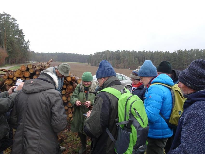18 sehr interessierte Teilnehmer waren am Nikolaustag bei der Führung in Gerhardshofen dabei. Diplom-Biologin Diana Härpfer konnte neben und auf dem LBV-eigenen Grundstück bei Gerhardshofen eine Vielzahl spät wachsender Pilze vorführen. Sie begeisterte die Zuhörer mit einem lebendigen Vortrag und bewies profundes Fachwissen zur Ökologie und Verwendung der einzelnen Pilzarten. Initiiert wurde die Pilzexkursion von der LBV-Kreisgruppe Neustadt a.d.Aisch-Bad Windsheim.